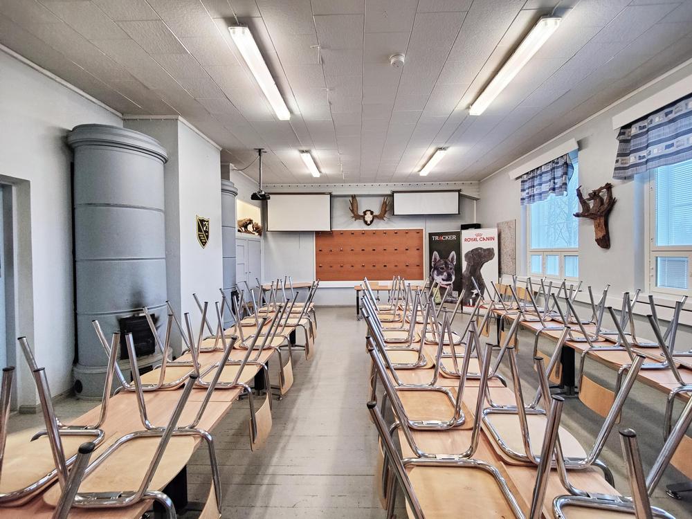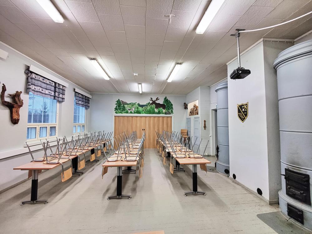Tilat: Sali, kanttiini, keittiö, eteinen, makuuhuoneita, suihku, ulkosauna, mökkejä