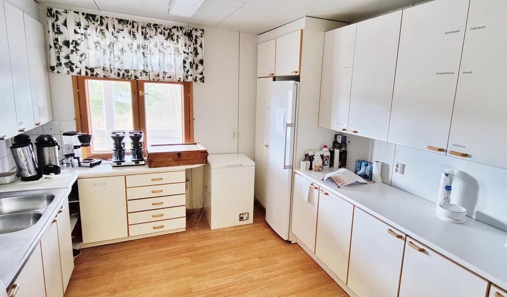 Astiat: Ruokailupaikat ja astiasto 100 henkilölle.