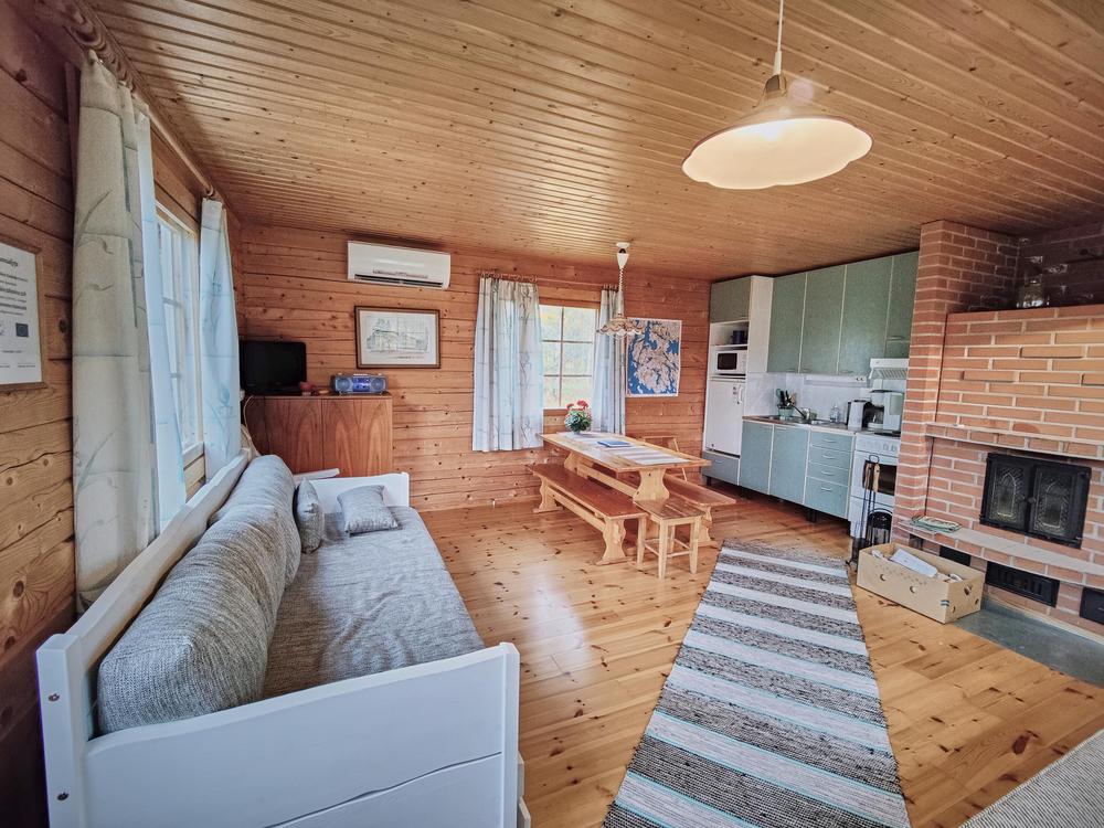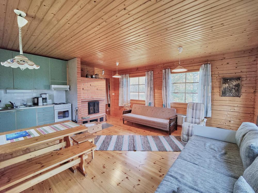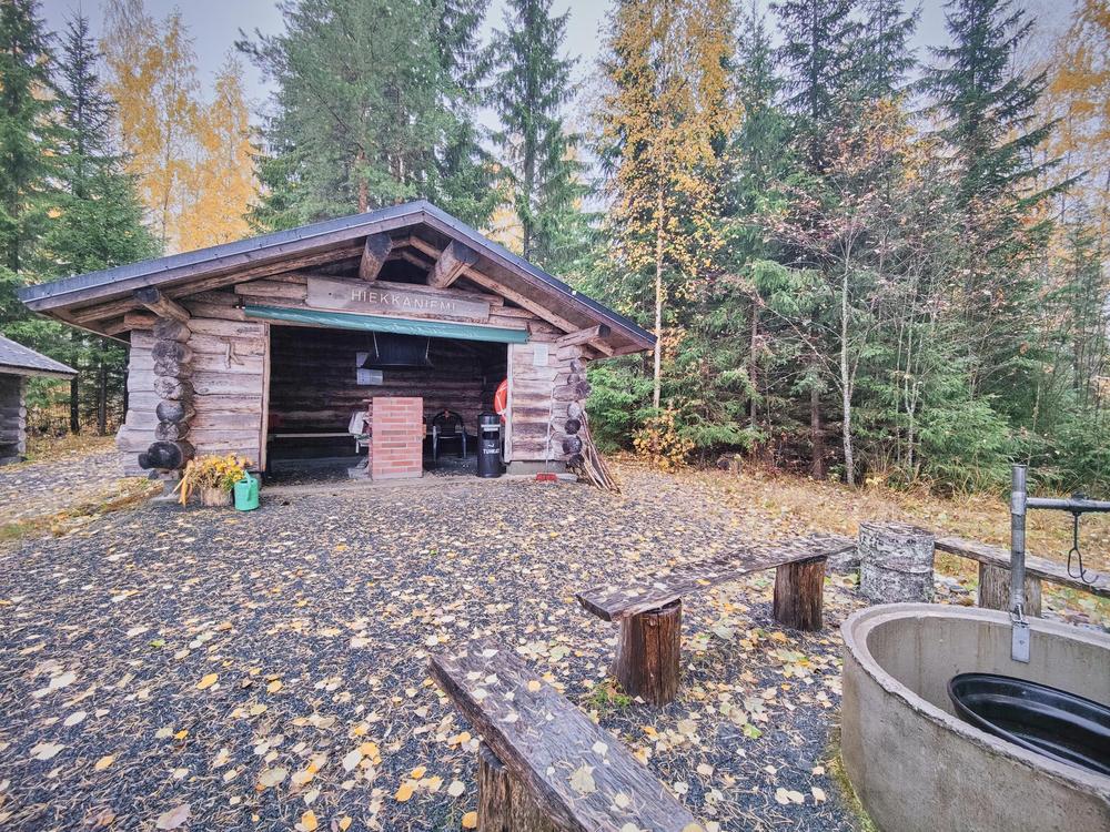 Hiekkaniemen laiturilta noustessa muutaman askeleen päässä on kaunis kota, suojainen mökki missä on veneilijän tai hiihtäjän on hyvä levähtää. Tilaa löytyy isommallekin ryhmälle. VC ja puuvarasto on tietenkin paikalla.