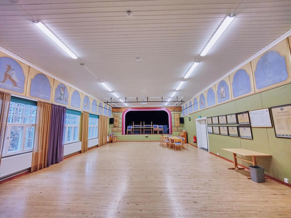 Tilat: Juhlasali, kahvio/kokoustila, keittiö, harrastetilat, wc