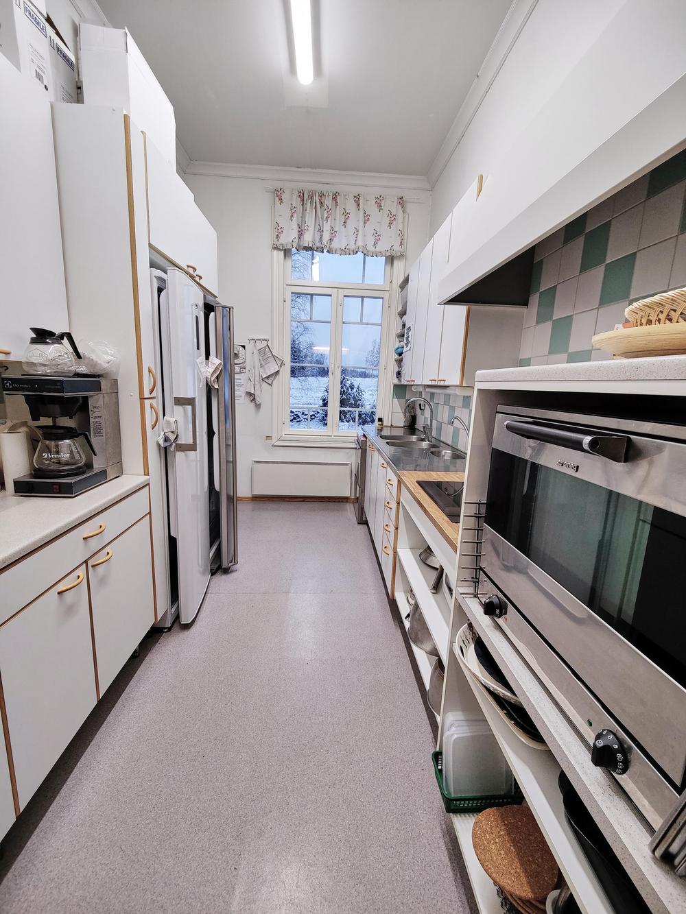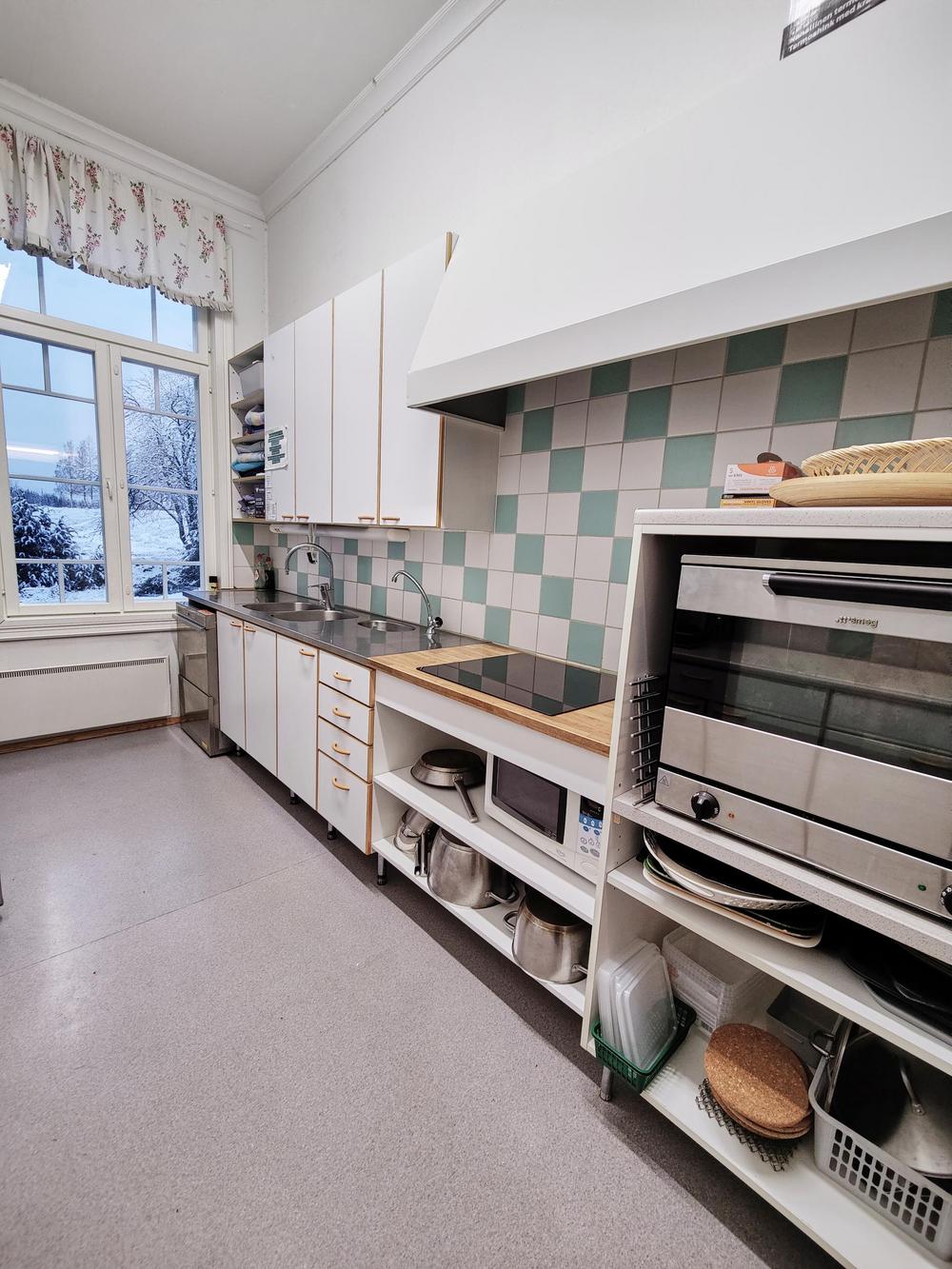 Keittiö: Perusvarustus, osa laitteista teollisuustasoisia