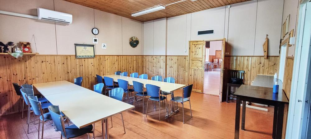 Tilat: Sali, kahvio/kokoustila, eteinen, keittiö, wc:t