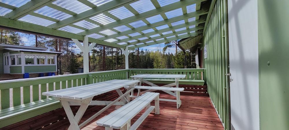 Tilat: Tanssisali, kahvio, ulkokäymälät, lisärakennuksessa katettu terassi, grillauspiste ja lipunmyyntipiste