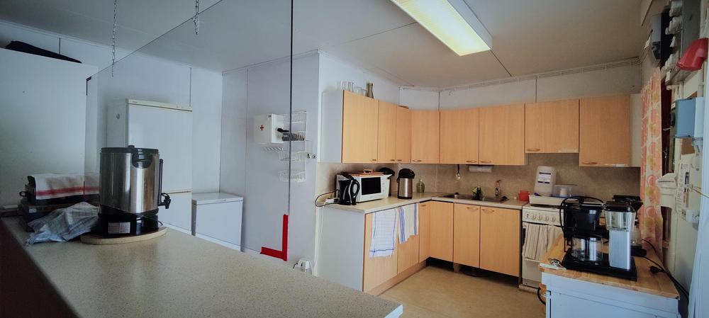 Keittiö: Liesi, kahvinkeitin, uuni, mikro, kylmäsäilytystilat