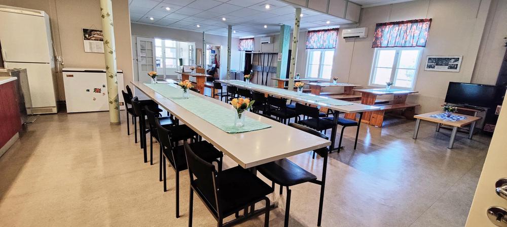 Tilat: Eteisaula/kahvio, keittiö, sali, wc:t