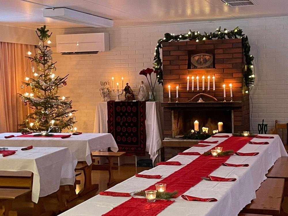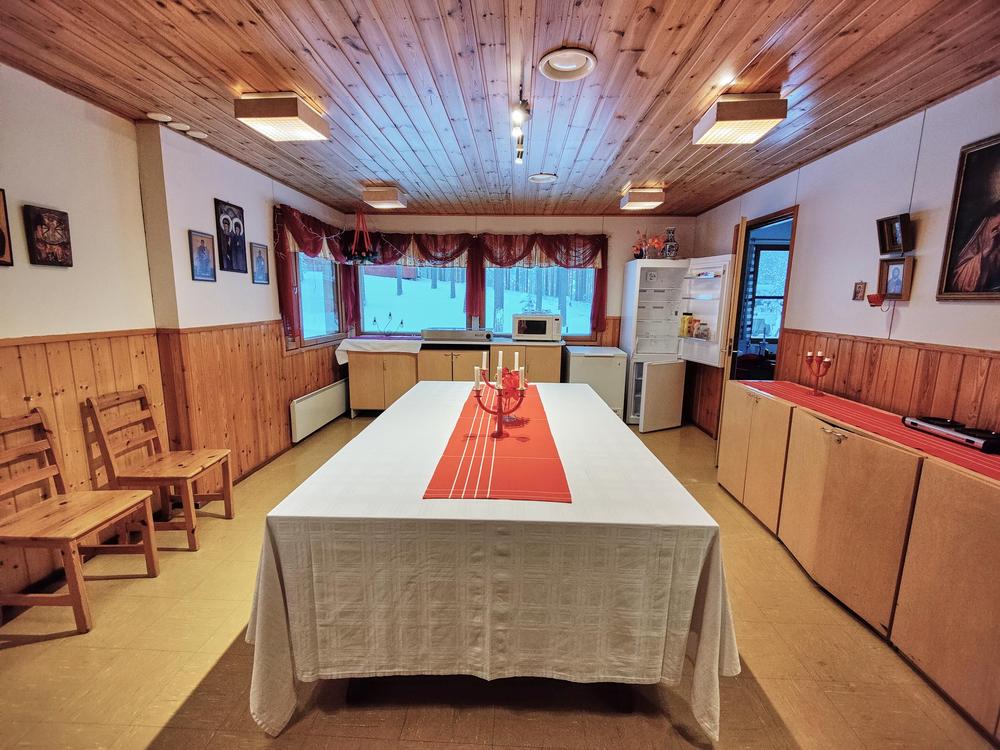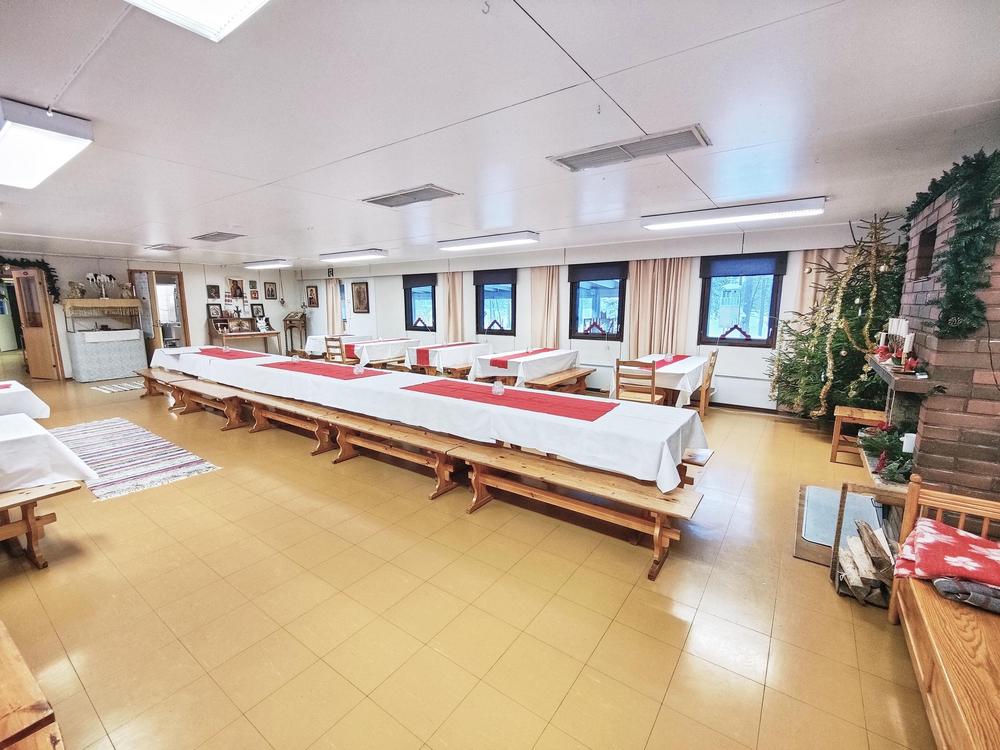 Tilat: Sali, tarjoiluhuone, keittiö, majoitushuoneita, wc, suihku, sauna, rantasauna, erillisiä majoitusmökkejä, pyhäkkö, kota