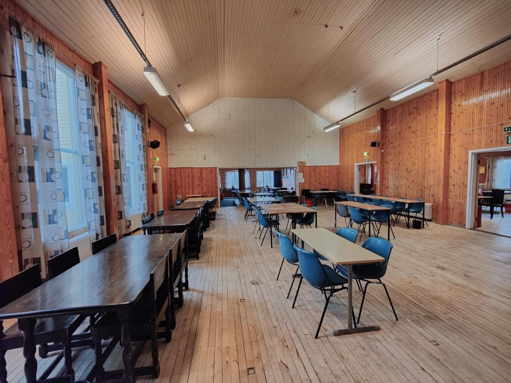 Tilat: Sali, vastaanottoaula, kahvio, keittiö, wc