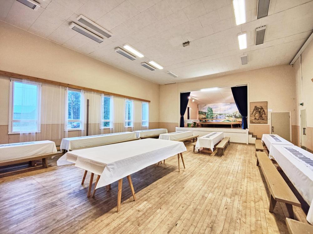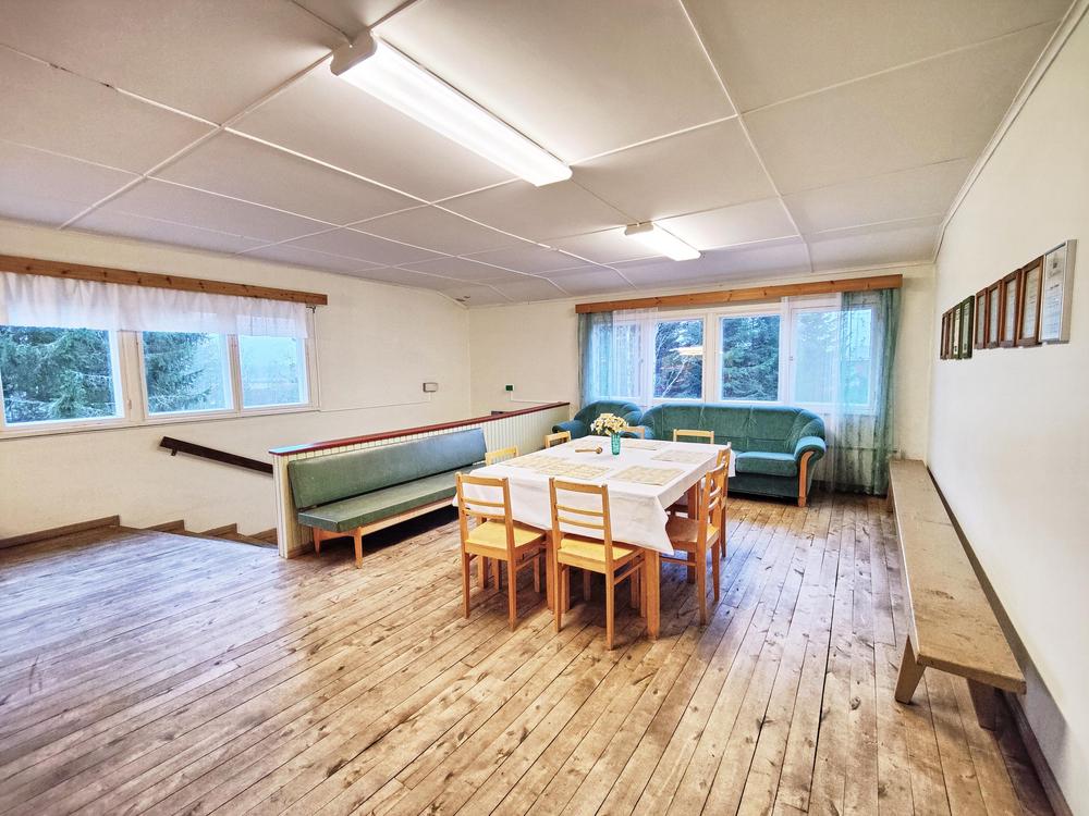 Tilat: Eteinen, sali, kahvio, yläkatsomo saliin, keittiö, wc