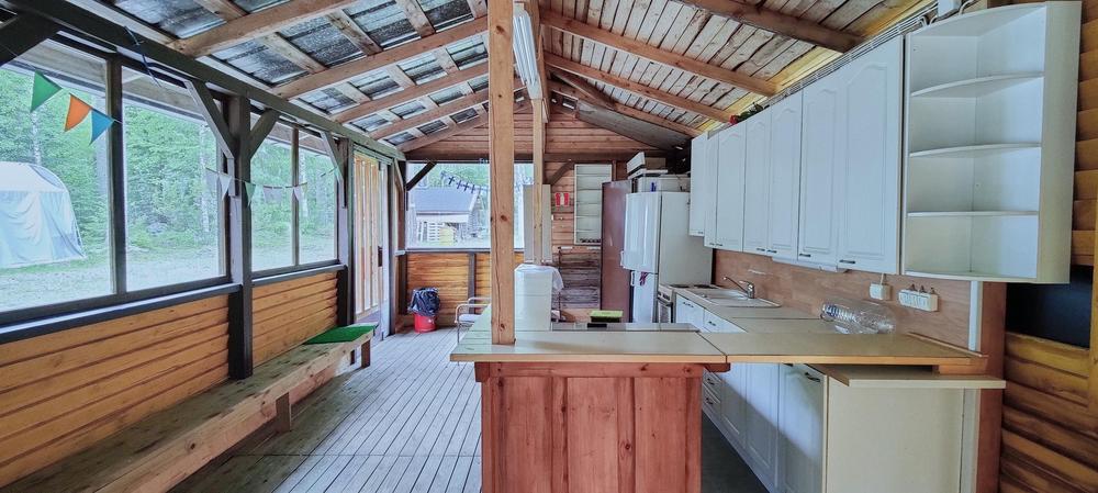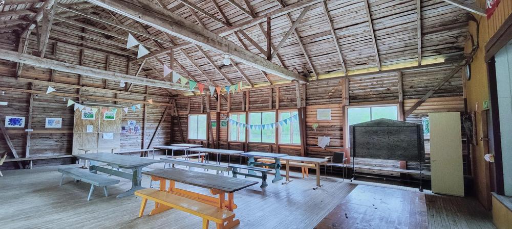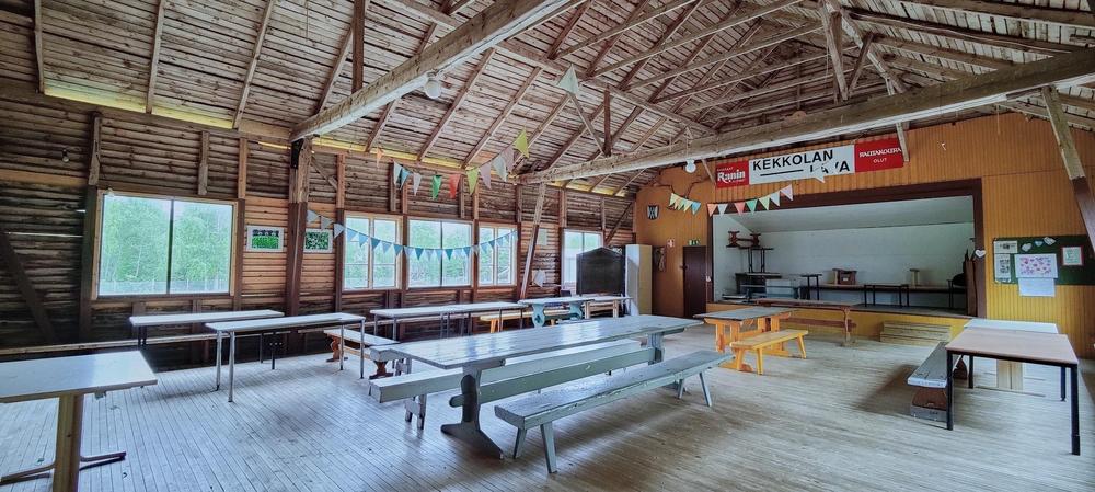 Tilat: Sali, kahvio, keittiö, ulkohuussi, lihankäsittelytilat, kota lipunmyyntikoppi