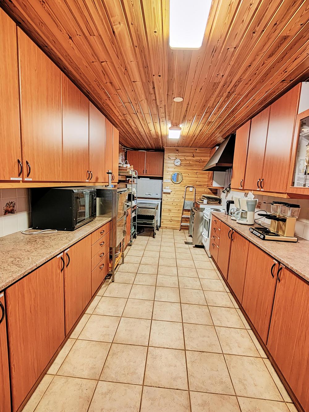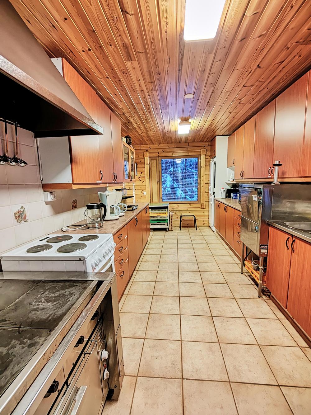 Keittiö: Perusvarustus, osa laitteista teollisuuskeittiötasoa