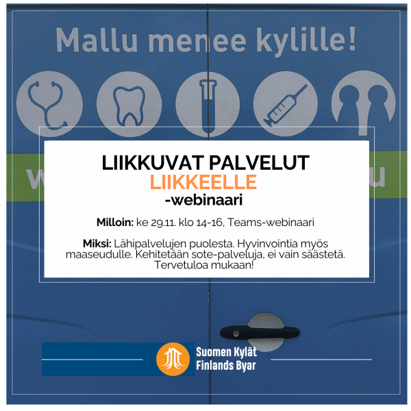 Liikkuvat palvelut liikkeelle hyvinvointialueilla -webinaari 29.11. klo 14-16 - Tilaisuudet (suomenkylat.fi)