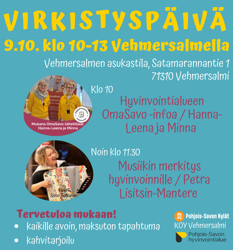 Hyvinvointialueen Hanna-Leena ja Minna mukana klo 10-11.30 tapahtumassa kertomassa hyvinvointialueesta, ja erityisesti sen digitaalisista palveluista.